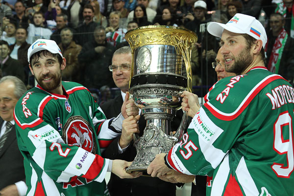 – На самом деле, первый кубок у меня был в 2006-м году. Все уже привыкли считать трофеи с образования КХЛ, но до этого был такой же хоккей, такой же плей-офф и такой же кубок, только назывался он по-другому и вмещал меньше шампанского. До 2008-го года в Суперлиге играли те же команды, все также хотели выиграть, а дойти до финала и выиграть было ничуть не легче, чем сейчас. Как уже заведено, первый Кубок Гагарина – это новая история российского хоккея, и, к счастью, он достался «Ак Барсу» благодаря «золотому» голу нашего капитана (Алексея Морозова – прим.).
