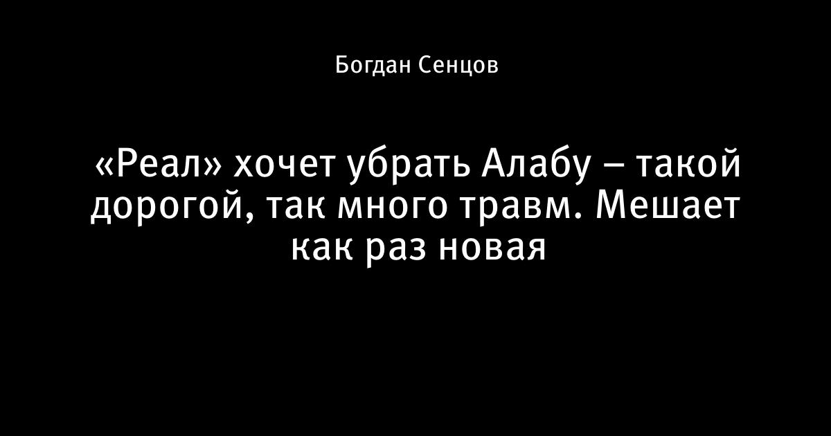 Очевидно, «Реалу» очень мешает новая травма Алабы. В конце июня австриец повредил икроножную мышцу левой ноги. Как сообщает журналистка Аранчи Родригес, на восстановление уйдет около месяца.