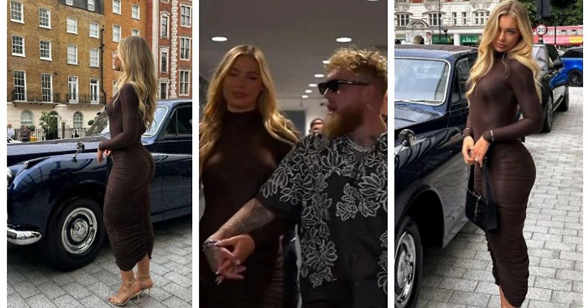 Посмотреть поединок собралось множество звездных гостей, в том числе и Джейк Пол. Особое внимание привлекла и его невеста Ютта Лердам. Конькобежка выбрала смелое полупрозрачное платье, отправившись на «Уэмбли».
