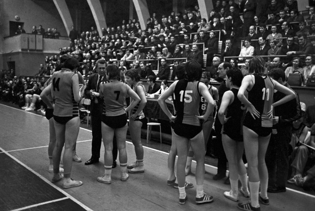 2 марта 1972. Рига. Во время минутного перерыва матча XII розыгрыша Кубка европейских чемпионов ТТТ-«Даугава» — «ДЖЕАС» (Италия) — 91:48