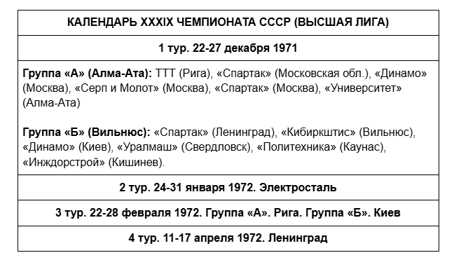 XXXIX чемпионат СССР. Высшая лига. 22 декабря 1971 — 17 апреля 1972