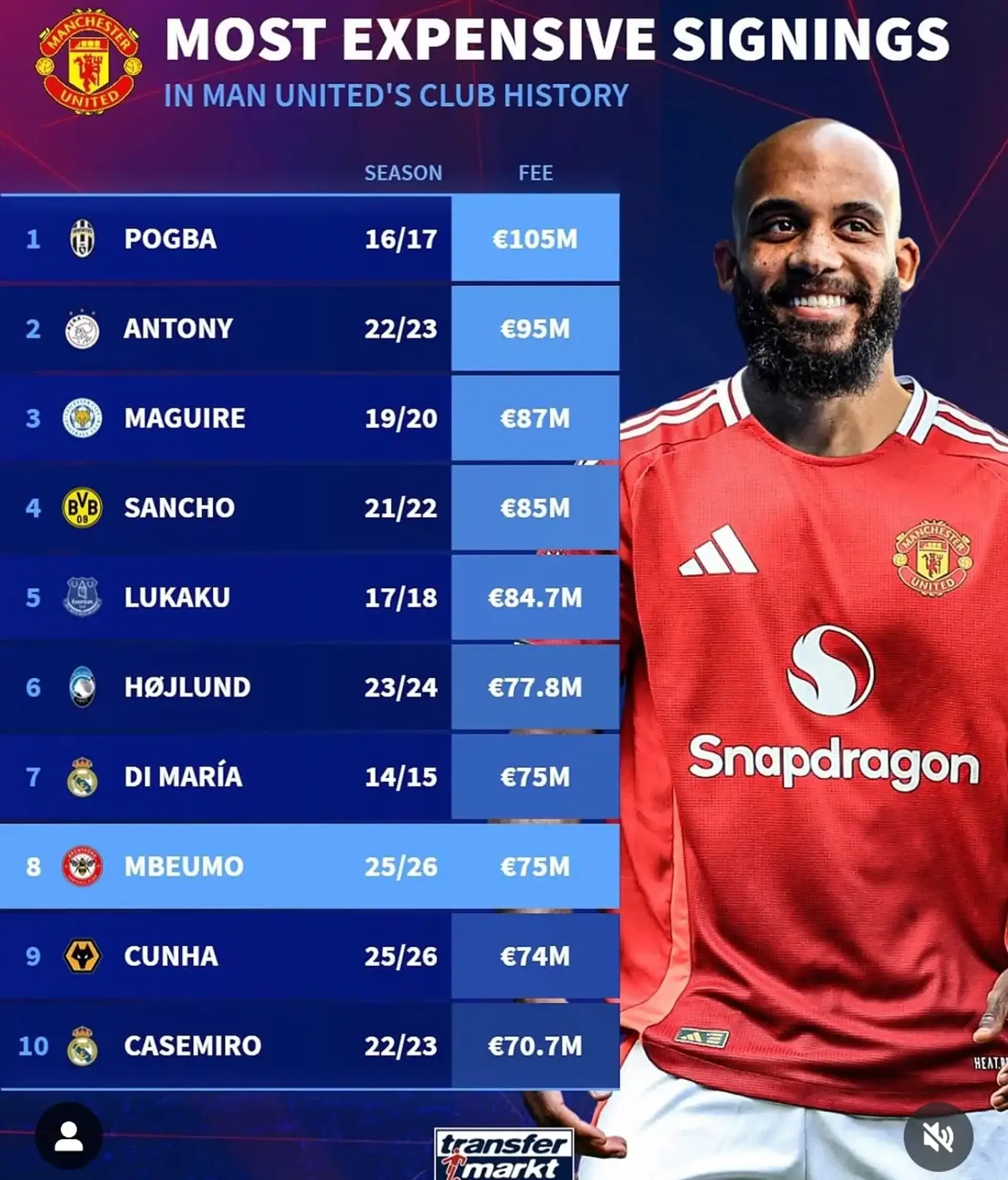 Любопытно, что большинство из этих трансферов не оправдали ожиданий, что вызывает опасения и у фанатов. Мбемо и Кунья теперь — новая надежда на то, что дорогостоящие новички смогут наконец-то развеять «проклятие» дорогих переходов на «Олд Траффорд».