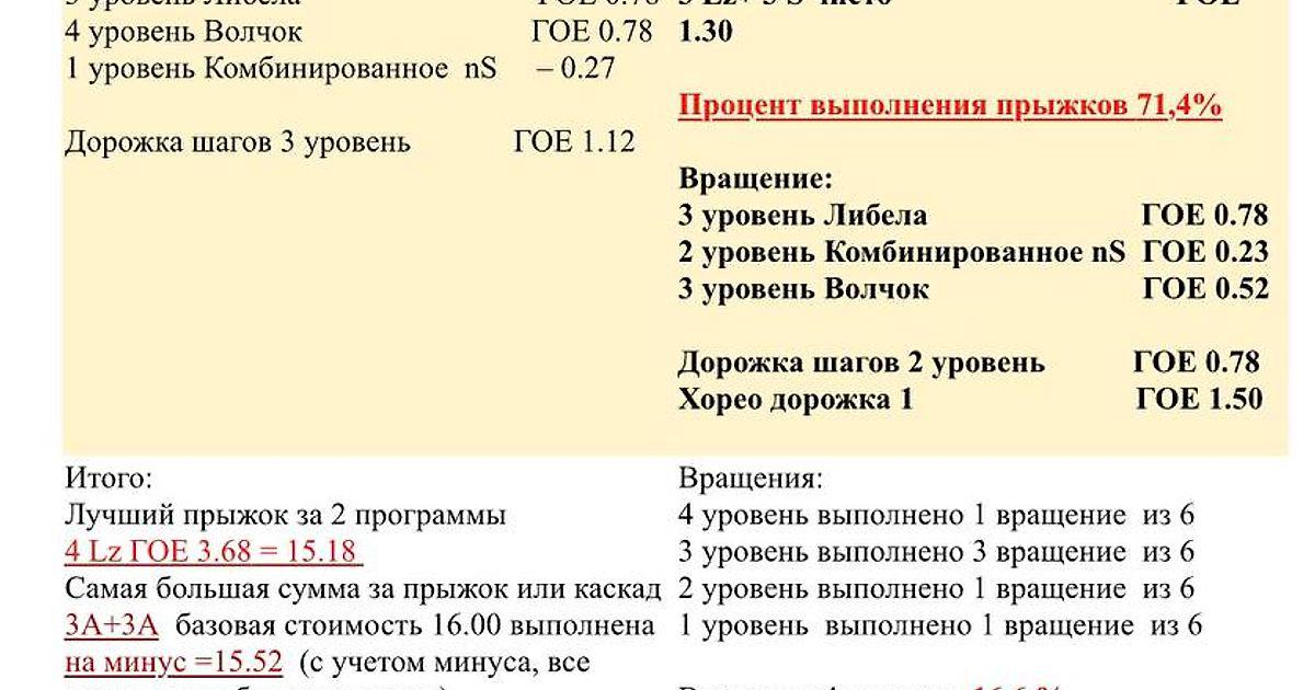 Самая большая сумма за прыжок или каскад 3А+3А базовая стоимость 16.00 выполнена на минус =15.52 (с учетом минуса, все равно самая большая сумма)