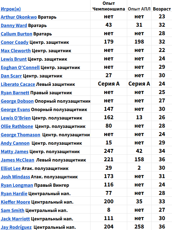Перед стартовой игрой против «Саутгемптона», куда мне удалось купить билет(репортаж в ТГ https://t.me/afcwrexham1864), мы уже имеем 8 новичком хорошего уровня. 4 из них имеют опыт выхода в АПЛ, что должно вселить в коллектив уверенность необходимую для того, чтобы для начала закрепиться в «Чемпионшипе». Но трансферы еще будут, и на выход тоже, так как в заявке лишь 25 мест.