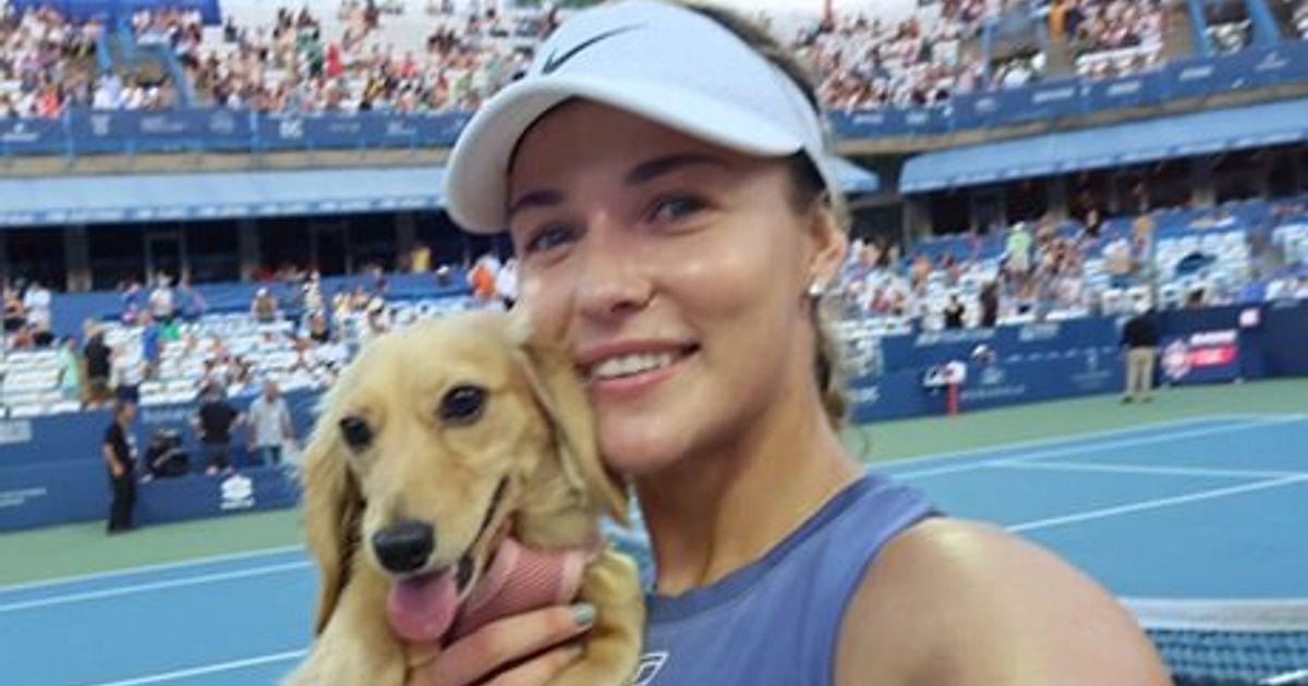 А еще последние два матча сияет гостья, которая выбегает на корт после побед Калинской. Это ее собачка Белла.