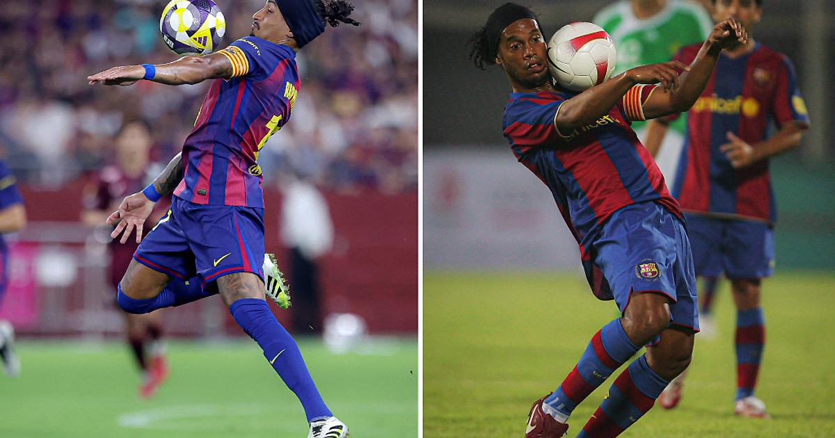 Да, как же Рафинья напомнил Роналдиньо. В товарищеском матче с «Виссел Кобе» он вышел на поле с повязкой на голове — деталь, которую невозможно не связать с образом Ронни. Та же легкость, тот же стиль, тот же вайб. Не случайность — история замыкается.