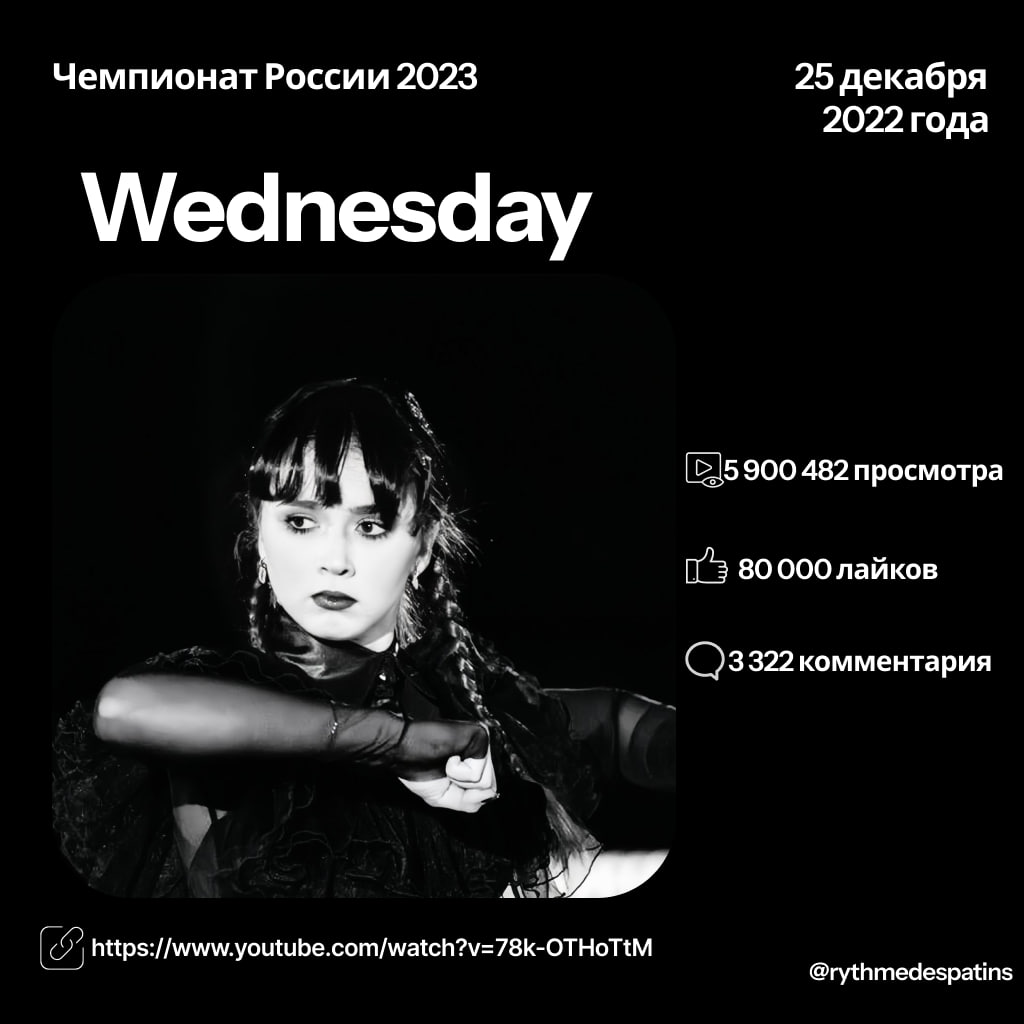 Безусловный лидер🏆 — программа «Wednesday», которая суммарно набрала более 57 миллионов просмотров! Этот феноменальный номер продолжает восхищать зрителей по всему миру🔥
