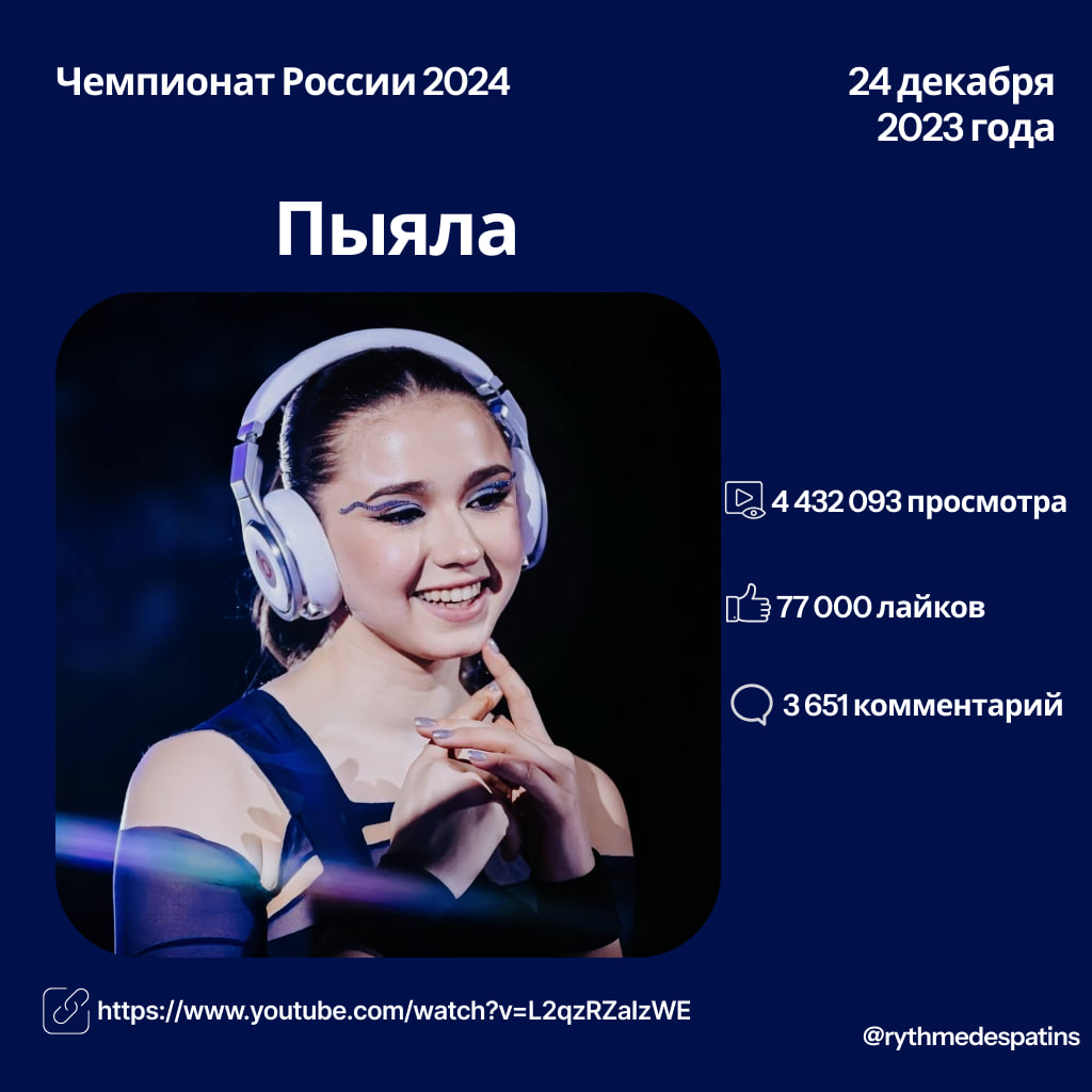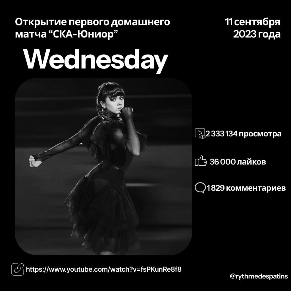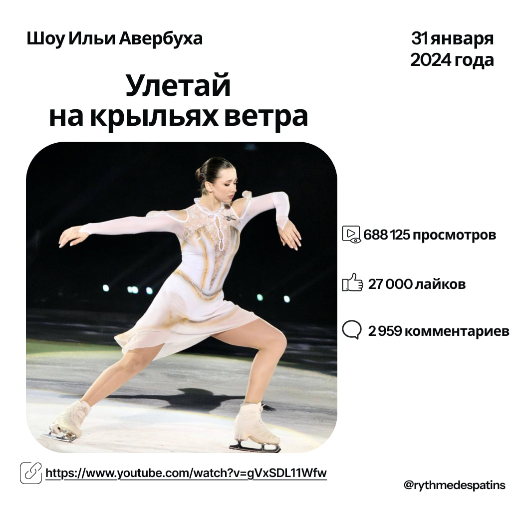 Пост готовился еще в первой половине июля, соответственно за это время просмотры некоторых прокатов существенно увеличились (например, Wednesday с Чемпионата России 2023 – уже 36 миллионов 893 тысячи). Хорошая динамика, которая наглядно показывает, что программы Камилы до сих пор интересны зрителям.