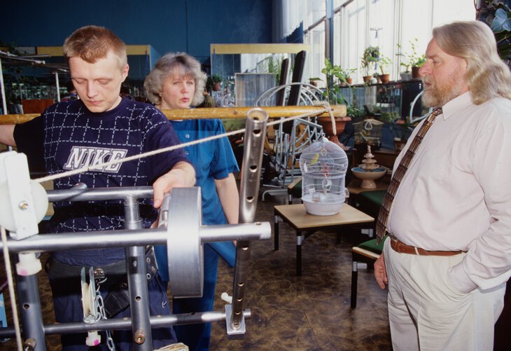 Он укреплял мышцы рук, спины, груди, изучал анатомию, биомеханику и реабилитацию по книгам. Для тренировок даже сконструировал систему из труб, проволоки и реек, которую друзья установили около больничной койки.