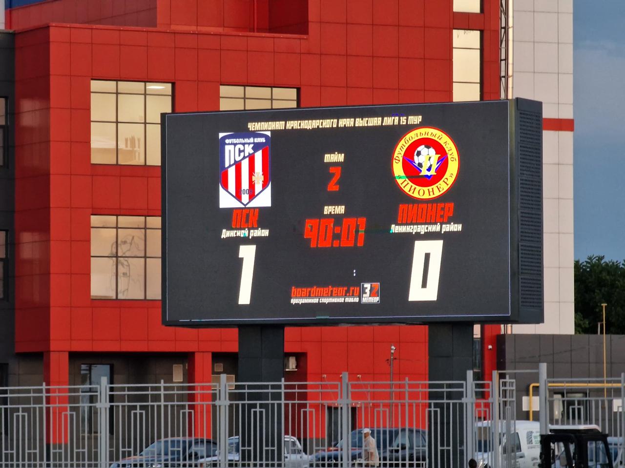 27 июля 2024 г. Краснодарский край, станица Динская, стадион «Кубань». Чемпионат Краснодарского края, Высшая лига. «ПСК» – «Пионер» (ст. Ленинградская) 1:0. 500 зрителей (вмещает 1100).