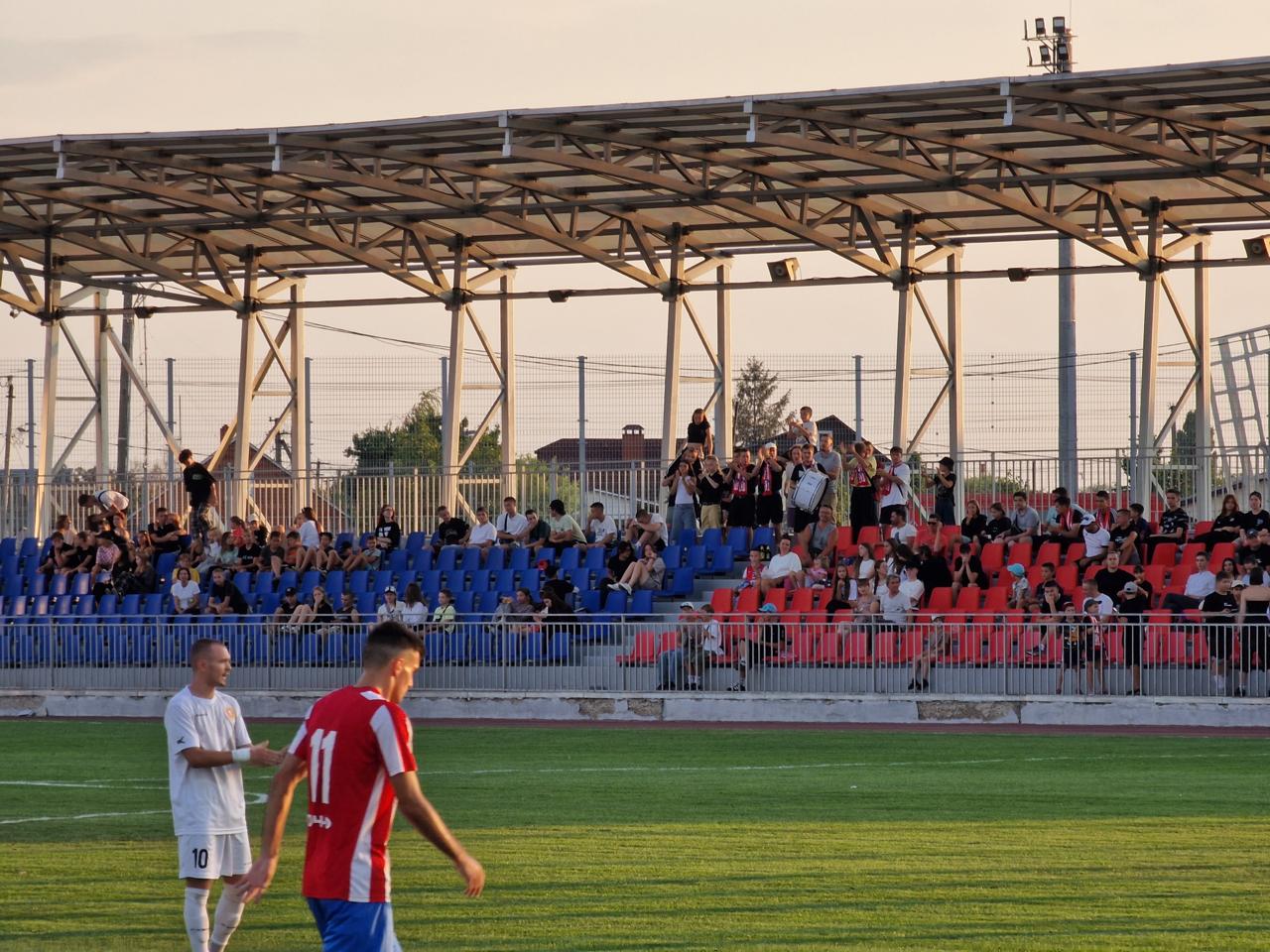 Уже за полчаса до начала на трибуне появились первые группы болельщиков. Минут за пятнадцать их уже было очень много, несколько сотен. Составы объявлял стадионный диктор в стильной клубной футболке (не игровой) и клубной же бейсболке. С матча велась прямая видеотрансляция с комментарием. Шумовую поддержку обеспечивала группа активных болельщиков хозяев в шарфах, с флагами и барабаном.