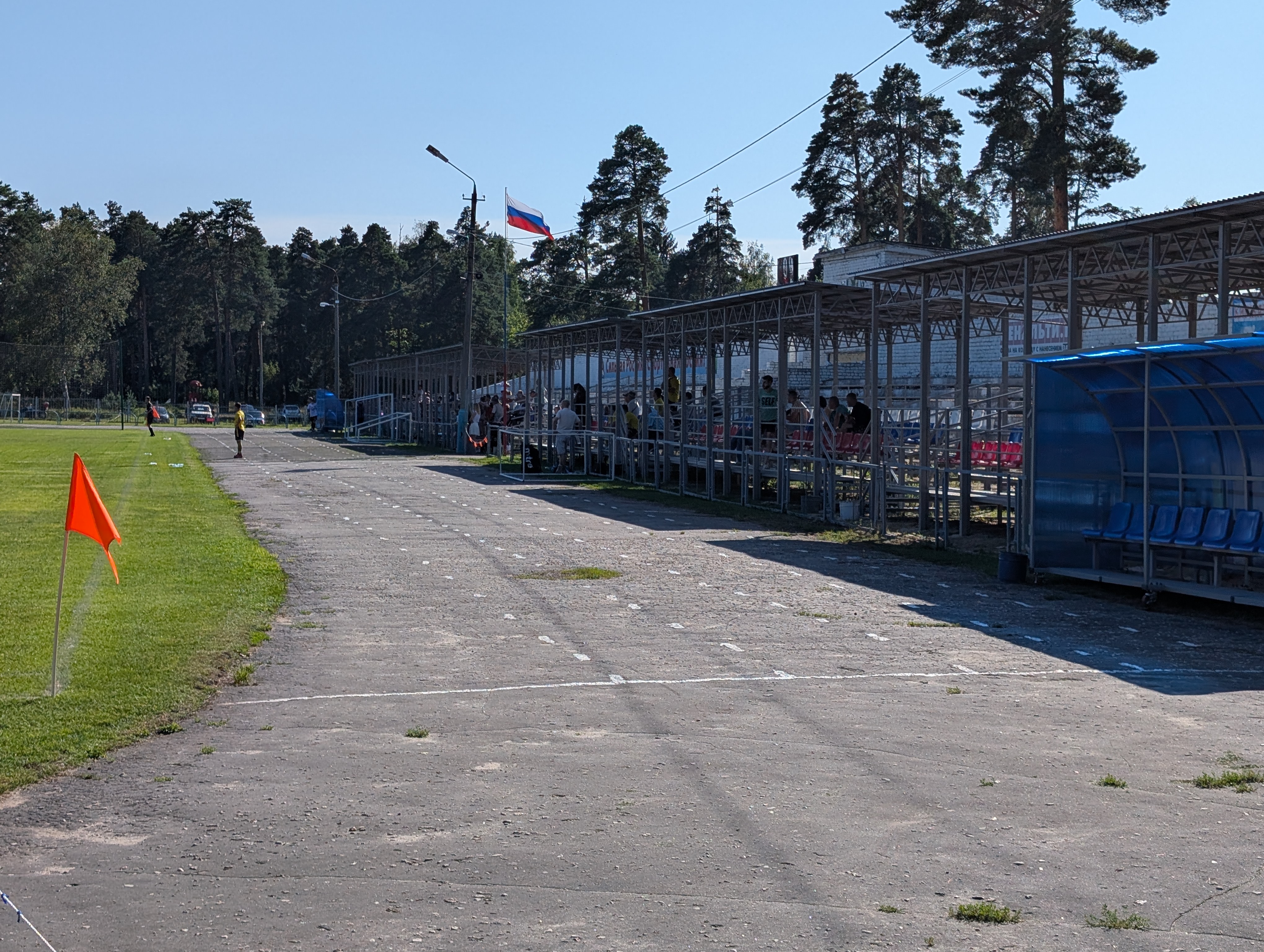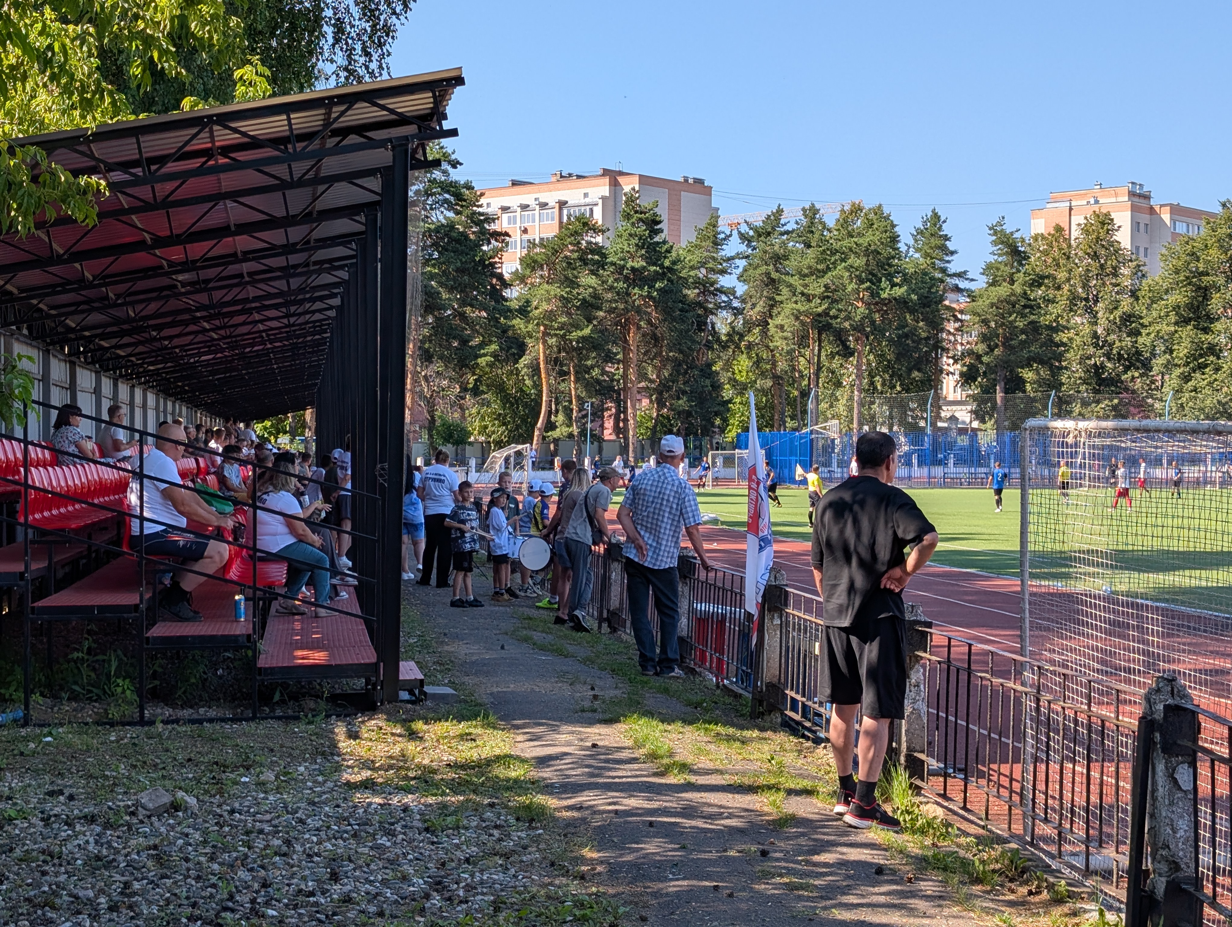 Болельщики постепенно подходят в предвкушении матча Чемпионата Владимирской области Высшая Лига между Рекорд (Александров) и 5 Октябрь (Струнино)⚽