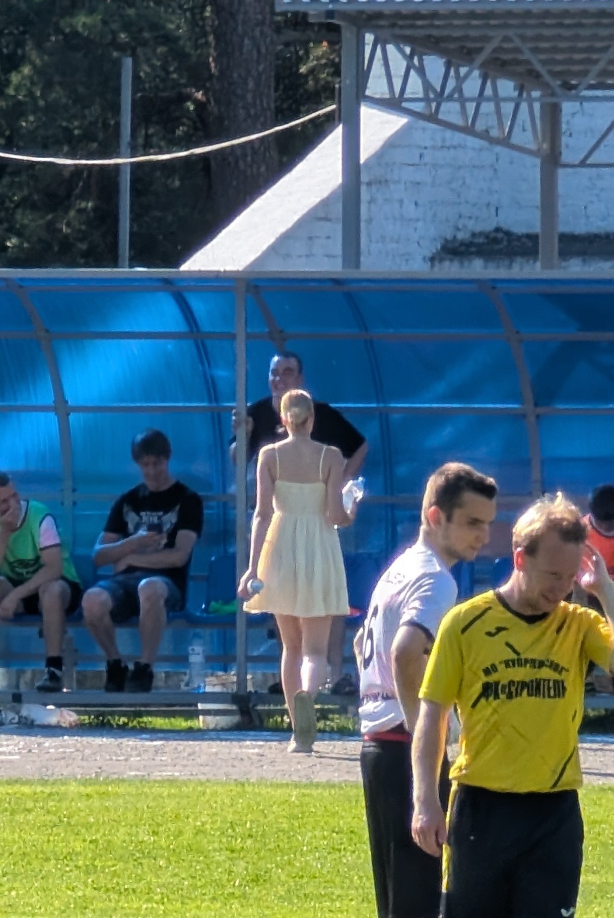 Далее произошло прекрасное, на поле вышла медицинская помощь. С выходом этой девушки в бежевом платье на трибунах стало жарко. Честно говоря, я успел только заснять как она уходит с поля, так как тоже просто пялился на нее😍😀 Но это было очень эффектно. Лучший момент матча😀