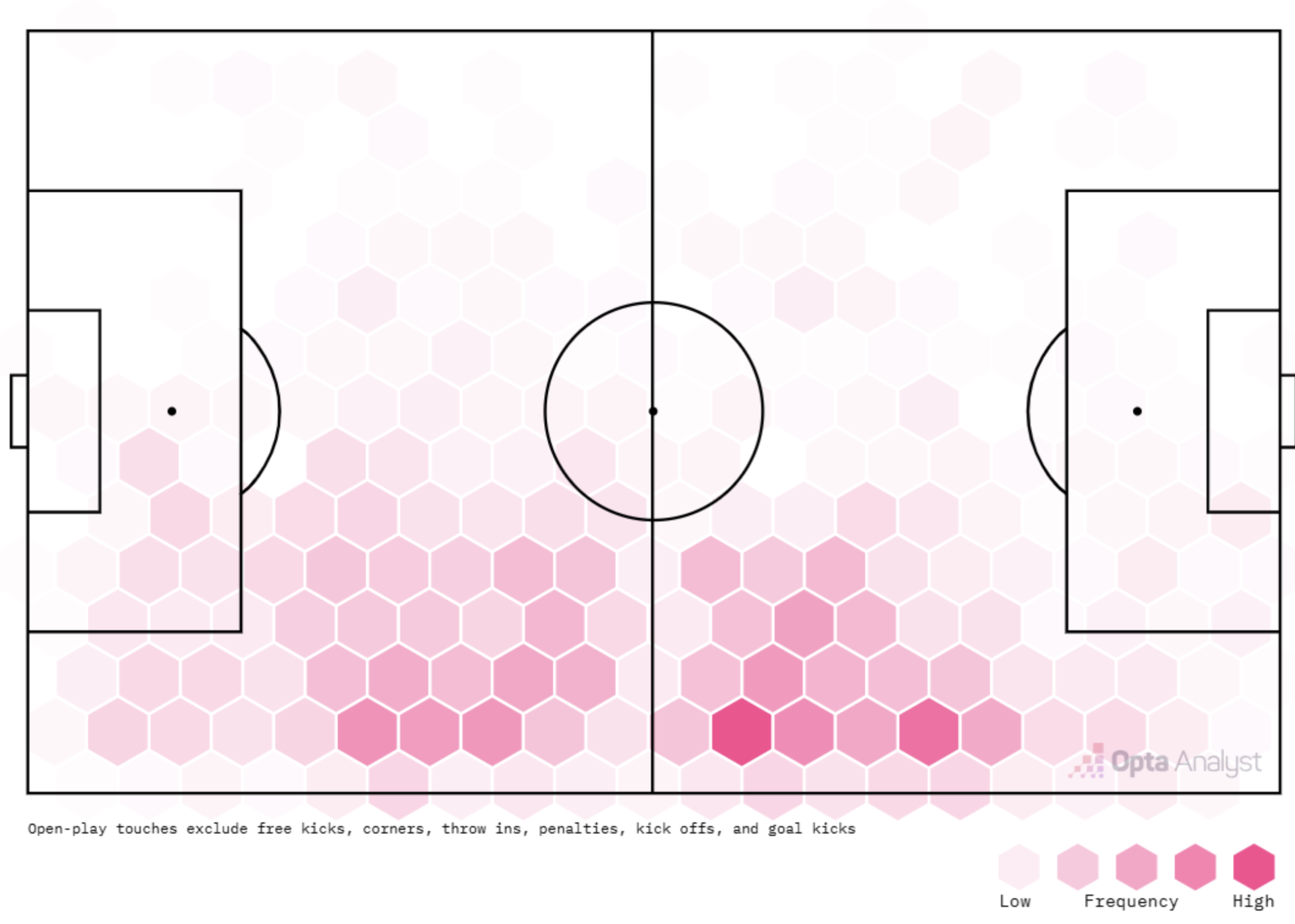 Почти все. Позиционно – универсал: играл и ближе к центру, и высоко, и глубоко. В розыгрыше – архитектор, с крутыми показателями прогрессирующих передач. По ведению – продвинулся: почти 93 ярда продвижения в среднем за матч, высокий % успешных обводок. Добавьте к этому хорошую игру в воздухе и грамотное покрытие пространства.