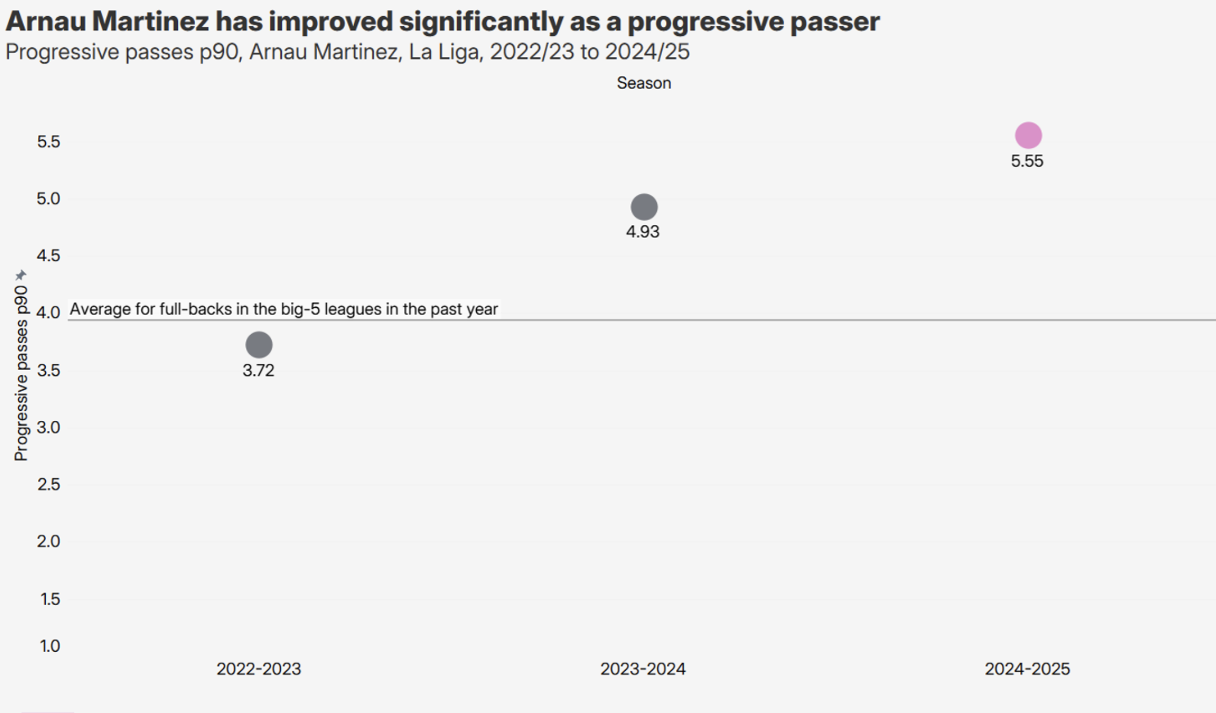 Пару лет назад казалось, что Мартинес – новый флагман футбольного нео-гибрида. Правый защитник, который может уйти в центр, встать в тройку, строить свою атаку и разрушать чужую. Летом 2023-го его активно сватали в топ-клубы. А потом – упал в иерархии «Жироны» за Яном Коуту, потерял регулярную практику, а сам клуб осыпался без Савиньо и Алеиша Гарсии. Отчетливо упал с радаров.