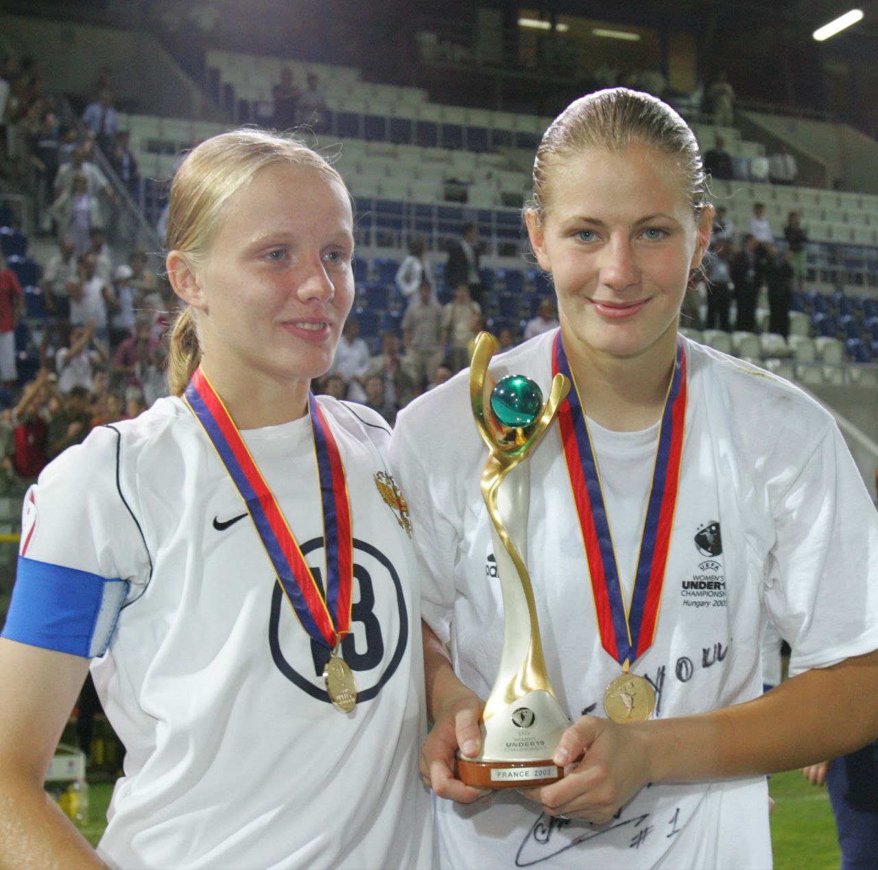 Елена Данилова – лучший бомбардир ЕВРО – 2005 с 9 голами, завершила карьеру в 2018, трехкратная чемпионка России, чемпионка США, на сегодняшний день строит карьеру тренера в США.