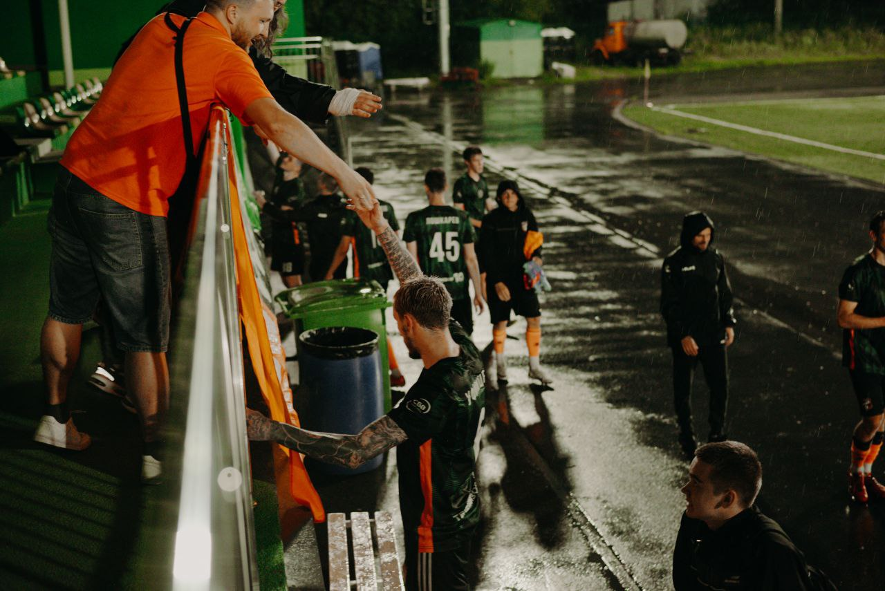 Атмосферы и активностей на трибунах было не так много. Несколько раз зарядили «Вперед, вперед, вперед 043», были и заряды после голов, но может быть это были только мои ожидания, либо на шизу повлияла явка, погода или что-то другое. В любом случае после матча команда подошла в полном составе и сказала спасибо болельщикам за поддержку. Это всегда приятно на любом уровне.