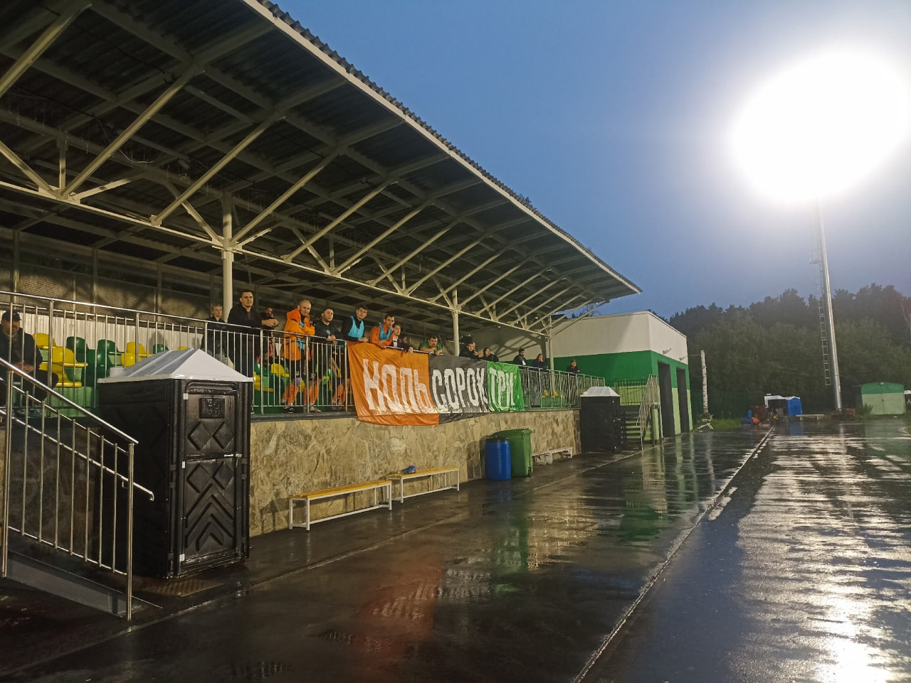 На игре было около 30-40 человек, если не считать игроков. Соперники, команда «Айсберг» приехали с одной заменой, у ФК 043 же было несколько замен. Игроки сначала поставили скамейки около поля, но после того, как пошел сильный дождь, ушли к нам на трибуну под крышу. Да, скамеек запасных там нет, да они и не сильно нужны на матчах такого уровня.
