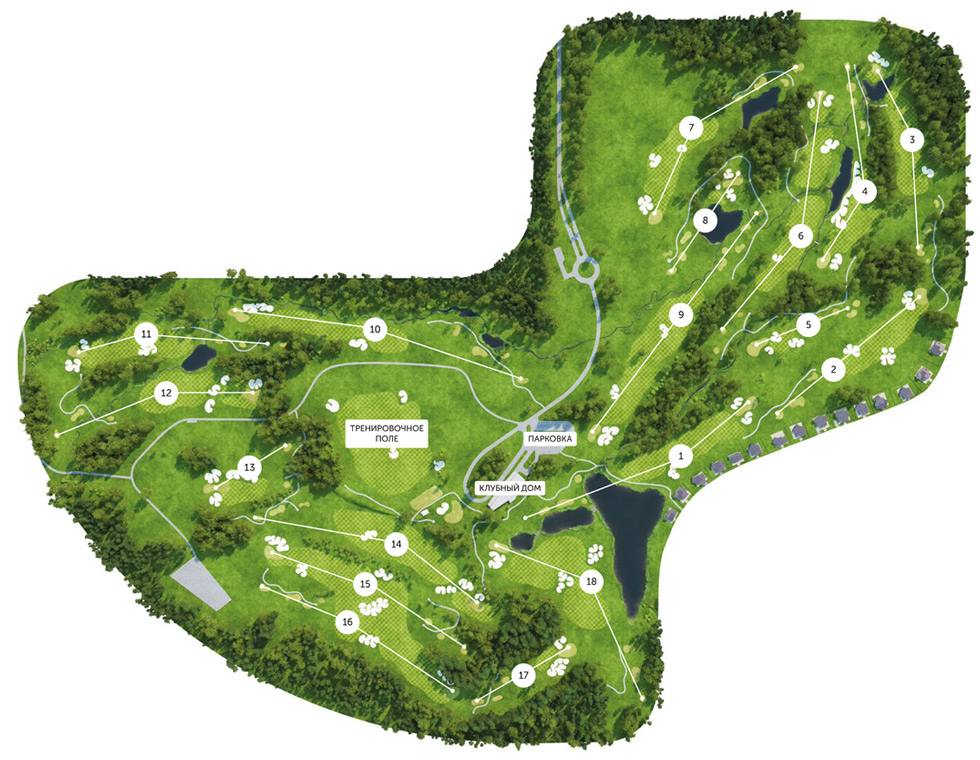 Чемпионское 18-луночное поле клуба расположено в 25 километрах от Екатеринбурга, в Сысертском районе Свердловской области. Проект, разработанный знаменитым английским архитектором Полом Томасом, был реализован к 2013 году, когда состоялось официальное открытие поля. Общая площадь игровой зоны – 75 гектаров, где на ухоженных газонах размещены 59 песчаных бункеров и 15 водных преград.