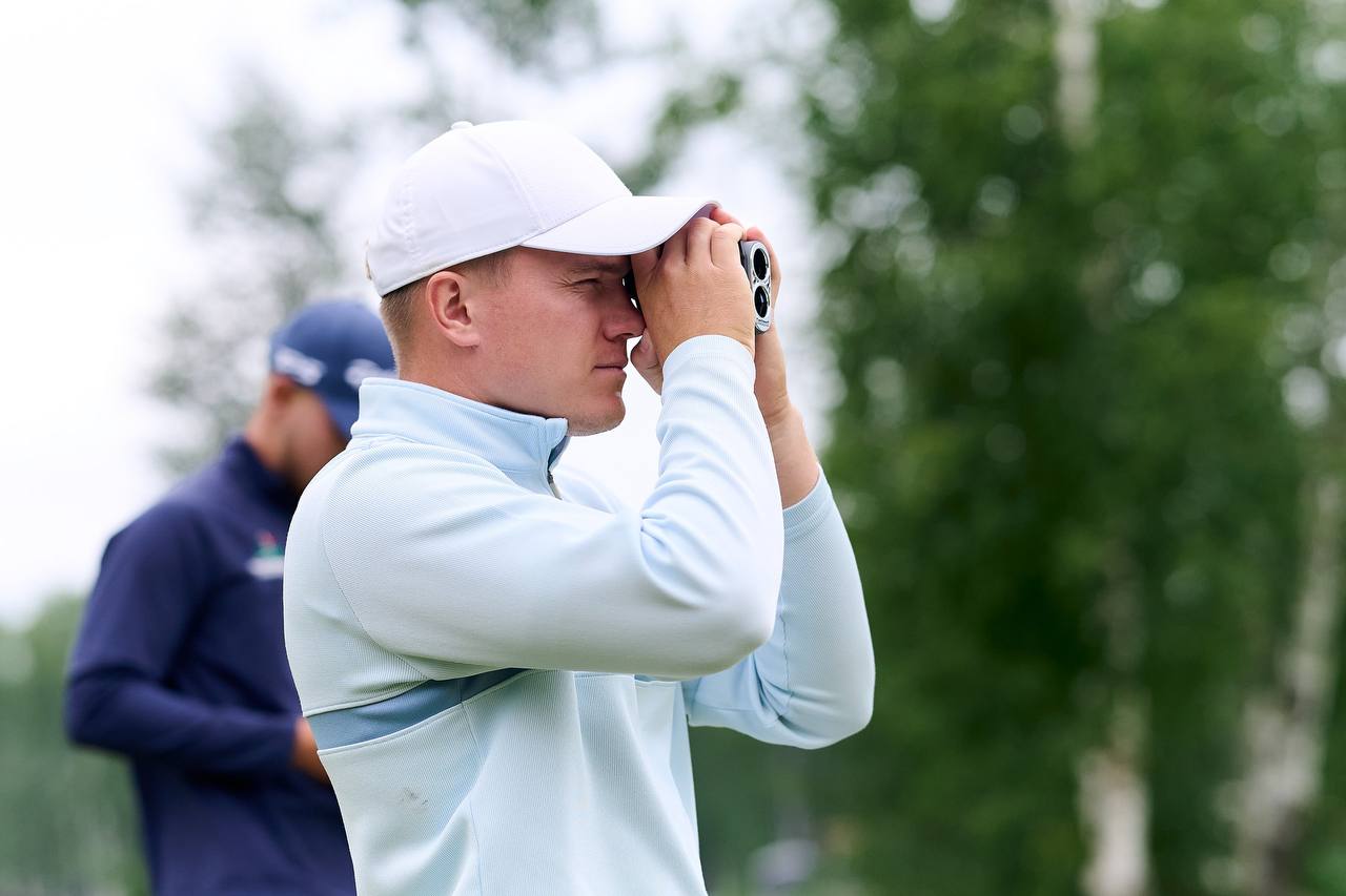 В этом году в Свердловскую область Владимир приехал в неплохой форме, но первый игровой день для шестикратного чемпиона оказался не самым удачным: 76 ударов (+4) в счетной карточке и шестое место в турнирной таблице, которое он разделил с Егором Ерошенко и юным Петром Коносовым. В активе Осипова по итогам дня всего 1 берди (минус один на лунке), 12 паров (ноль) и 5 богги (плюс один). По его меркам очень средненький результат, но важно учитывать сложность пинов (расположение лунки на грине в каждый отдельный день) и смену погодных условий: утренний дождь сменился солнечными +22 градусами, что повлияло, например, на то как мяч катиться по траве, спинится на гринах и так далее. Даже такой параметр как влажность воздуха влияет на скорость и, следственно, на дальность полета мяча. Плюс, разумеется, на поле очень интересная роза ветров, что также влияет на итоговый счет в карточке.
