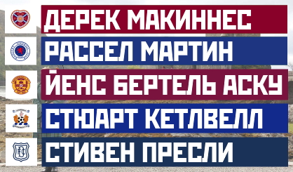Я отдаю предпочтение «Сент-Миррену». Очень обидно, что сила других команд не позволит им занять место выше, но при достаточной доле удачи «святые» смогут побороться даже за место в топ-5. Возможно, они смогут оттуда вытеснить «Абердин» или воспользоваться неудачей «Хибс». От «Данди Юнайтед» я не жду многого в этом сезоне. Если новые игроки проявят себя в должной мере, а команда поймает свою игру, они могут побороться за высокие места, но пока что я считаю, что они скорее станут лучшими из числа шести худших (седьмое место).