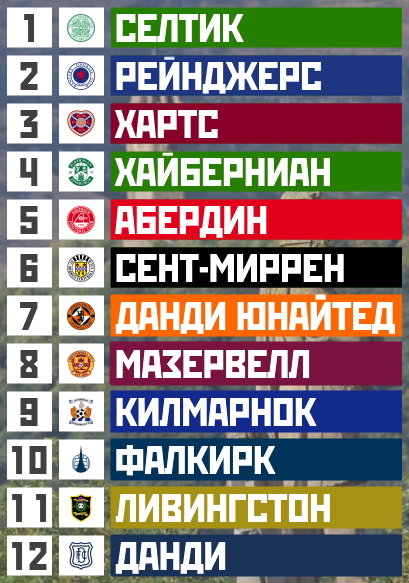 Я не считаю свое видение итоговой турнирной таблицы Премьершипа идеальным. В этом сезоне очень много нюансов и много команд, которые будут между собой бороться в разных частях чемпионата. «Рейнджерс» навяжет борьбу «Селтику» за золото. «Хибс», «Хартс» и «Абердин» будут бороться за третье место. Возможно, в их борьбу вступит «Сент-Миррен», но в первую очередь они поборются с «Данди Юнайтед» и, возможно, «Мазервеллом» за шестое место. «Килмарнок» и «Мазервелл» будут бороться между собой за седьмую строчку, в то время как «Фалкирк», «Ливингстон» и «Данди» – тройка борцов за выживание.