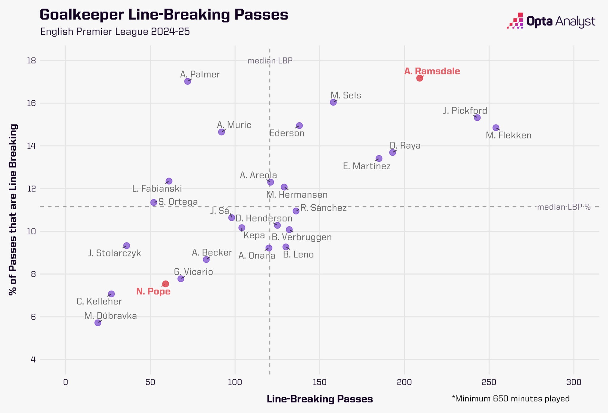 Эти трое демонстрировали наименьшую долю прорывных передач среди вратарей лиги. Примечательно, что двое из них (Дубравка и Поуп) представляли именно «Ньюкасл», что дополнительно подчеркивает тактическую проблему клуба в построении атак от ворот.