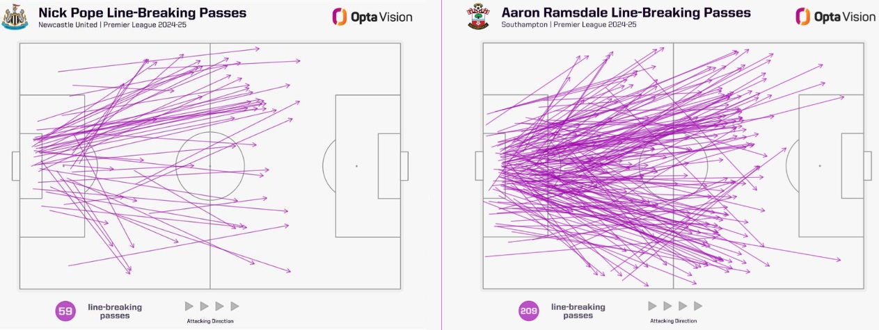 Здесь разница между Рамсдейлом и Поупом разительна. В прошлом сезоне Рамсдейл выполнил 209 прорывных передач (третий результат среди всех вратарей лиги), тогда как Поуп — всего 59.