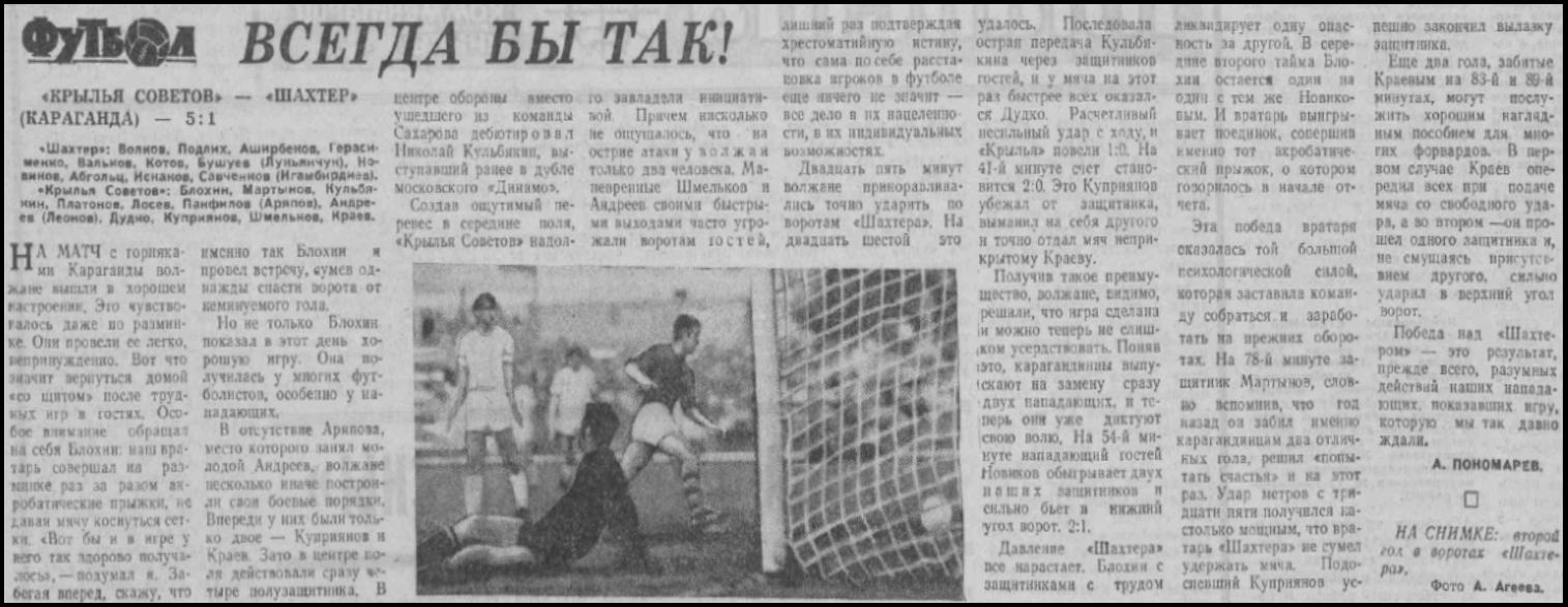 И только к матчам куйбышевских «Крылья Советов», председателем агитмассовой комиссии городской федерации футбола Сократом Макаровичем Мещеряковым, выпускались лучшие программки в стране, сочетающие в себе выдающееся цветовое, композиционное и информационное решение.