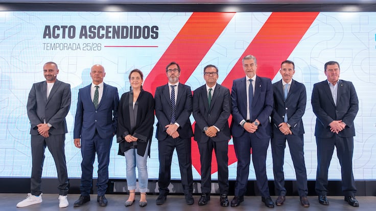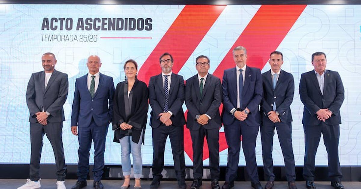 Представители семи клубов, поднявшихся в Примеру и Сегунду, собрались в штаб-квартире Ла Лиги на торжественное мероприятие, на котором не смог присутствовать Хавьер Тебас из-за медицинской процедуры.