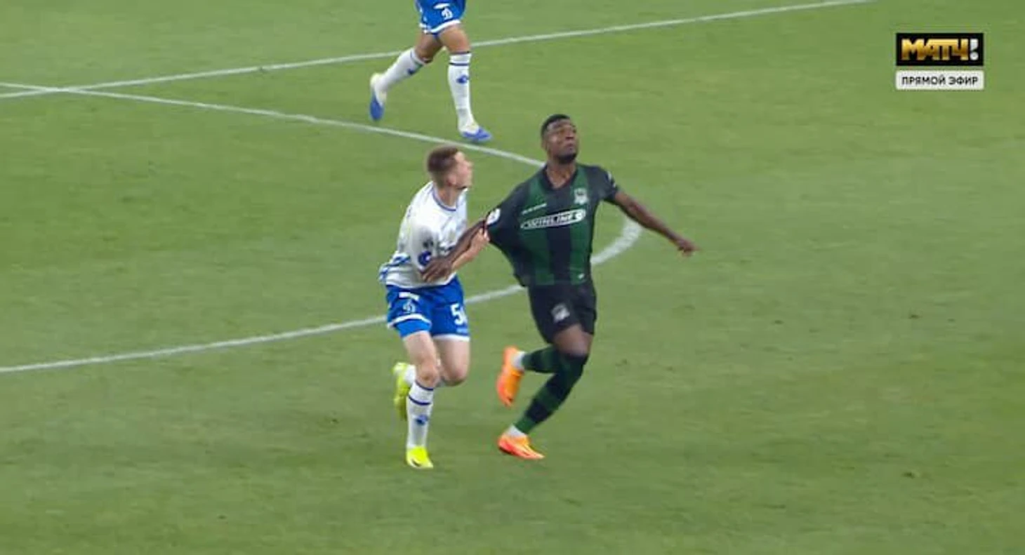 «Джон Кордоба убегал в быструю атаку, почти один на один с вратарем – угроза воротам была очевидной. Но защитник «Динамо» [Александр Кутицкий] грубо сбил его с ног, оборвав эпизод, который по всем признакам тянул на прямую красную карточку за лишение явной возможности забить гол.