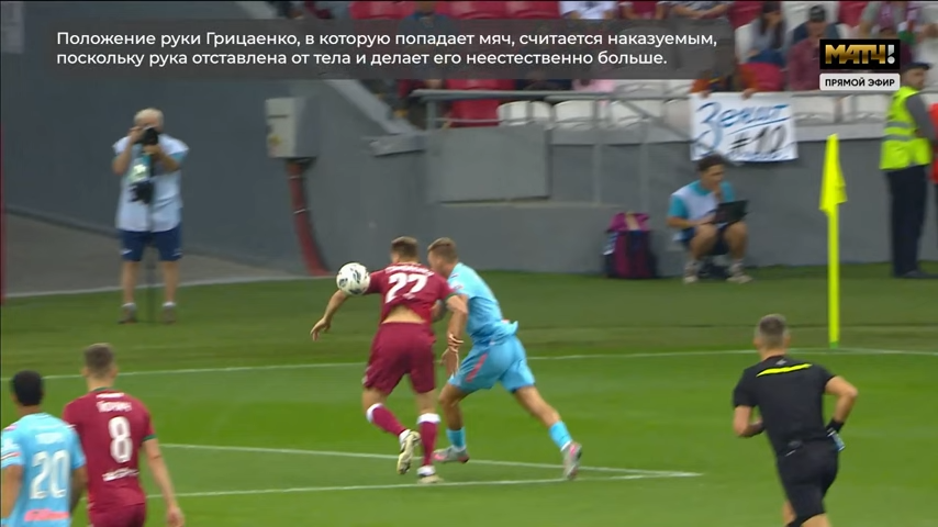 где ЭСК занял позицию, противоречащую своему же Решению по прошлому туру по «игре рукой» Аззи со Спартаком. И эта коллизия оставляет вопросы, особенно в свете дальнейшей судейской практики по сезону. Все-таки по мнению ИФАБ, изложенном в Правиле 12, «не осознанная» игра рукой не наказывается пенальти, если «неестественное увеличение» тела произошло из-за этого. А «осознанной игрой рукой» движение Грицаенко назвать нельзя.