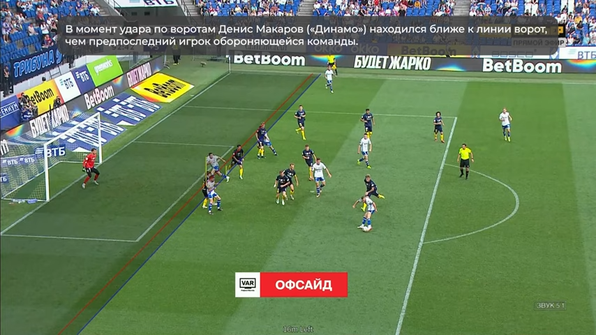 Решение ВАР здесь - «вне игры», поэтому предъявлять карточку спратаковцу Карасев не должен был, но из-за Протокола ВАР исправить ошибку линейного арбитра было невозможно. Так что кажется запланированное ИФАБ изменение в Протокол ВАР для рассмотрения эпизодов со 2 ЖК будет оправданным.