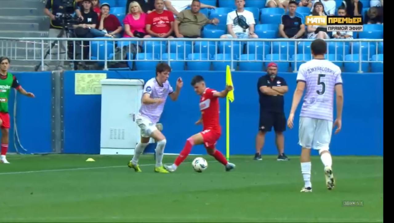 и Кукуяну пришлось его удалить. Так Спартак опять на второй тайм вышел играть в меньшинстве. Правда, в отличие от игры с Балтикой, команда Станковича не стала играть вторым номером после удаления - и была за это вознаграждена. Но для этого ГТ гостей пришлось сделать замену, которую в игре с калининградцами он сделать не решился - выпустить в перерыве на левый край прирожденного инсайда Дмитриева вместо многомиллионного новичка Жедсона. Который конечно ни за что бы там не появился при «живом» Маркиньосе. И уже через 4 минуты с начала тайма Игорь создал момент у ворот хозяев для Солари, но тот головой не попал. После нереализованного момента игра успокоилась, но через десяток минут Максименко во время крайне редкого проникновения хозяев в штрафную завалился сзади на ногу уже теряющего мяч сопернику. По рекомендации ВАР Иванова главный судья не мог не назначить пенальти, но Лончар пробил мимо. Активность Дмитриева на левом фланге атаки не прекращалась, и уже через 7 минут после пенальти он мог забить сам, но Гудиев отразил удар. Но в конце концов, уже в добавленное время, Дмитриев и Солари повторили комбинацию начала тайма, но на этот раз аргентинец сумел попасть в ворота. Казалось - вот она, победа. Но со Спартаком «случился» Зобнин.