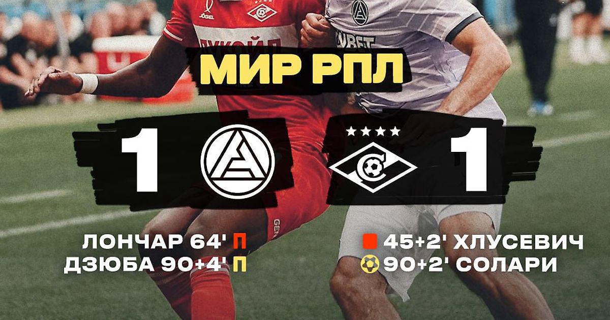 На 90+2-й минуте вингер гостей Пабло Солари открыл счёт в матче. На 90+5-й минуте Артём Дзюба сравнял счёт.