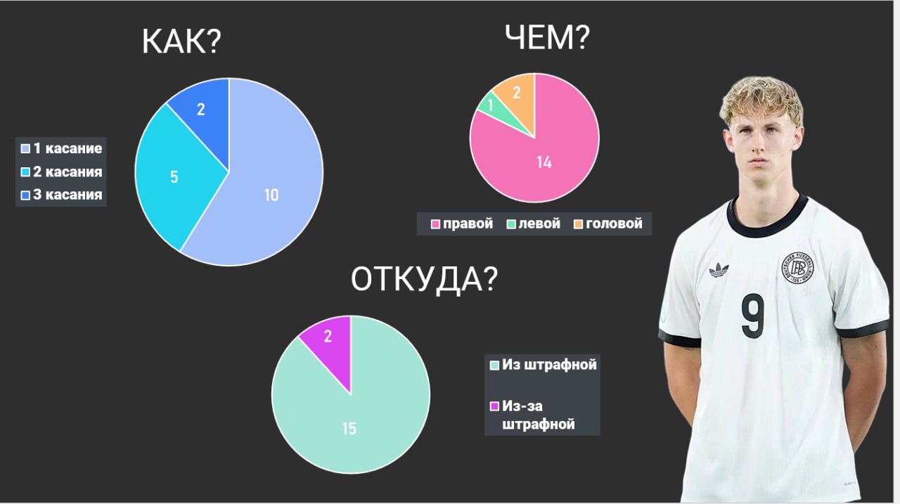 Ниже расклад всех 17 голов Мёрштедта в Юниорской Бундеслиги Юг / Юго-Запад в сезоне 2023/24.