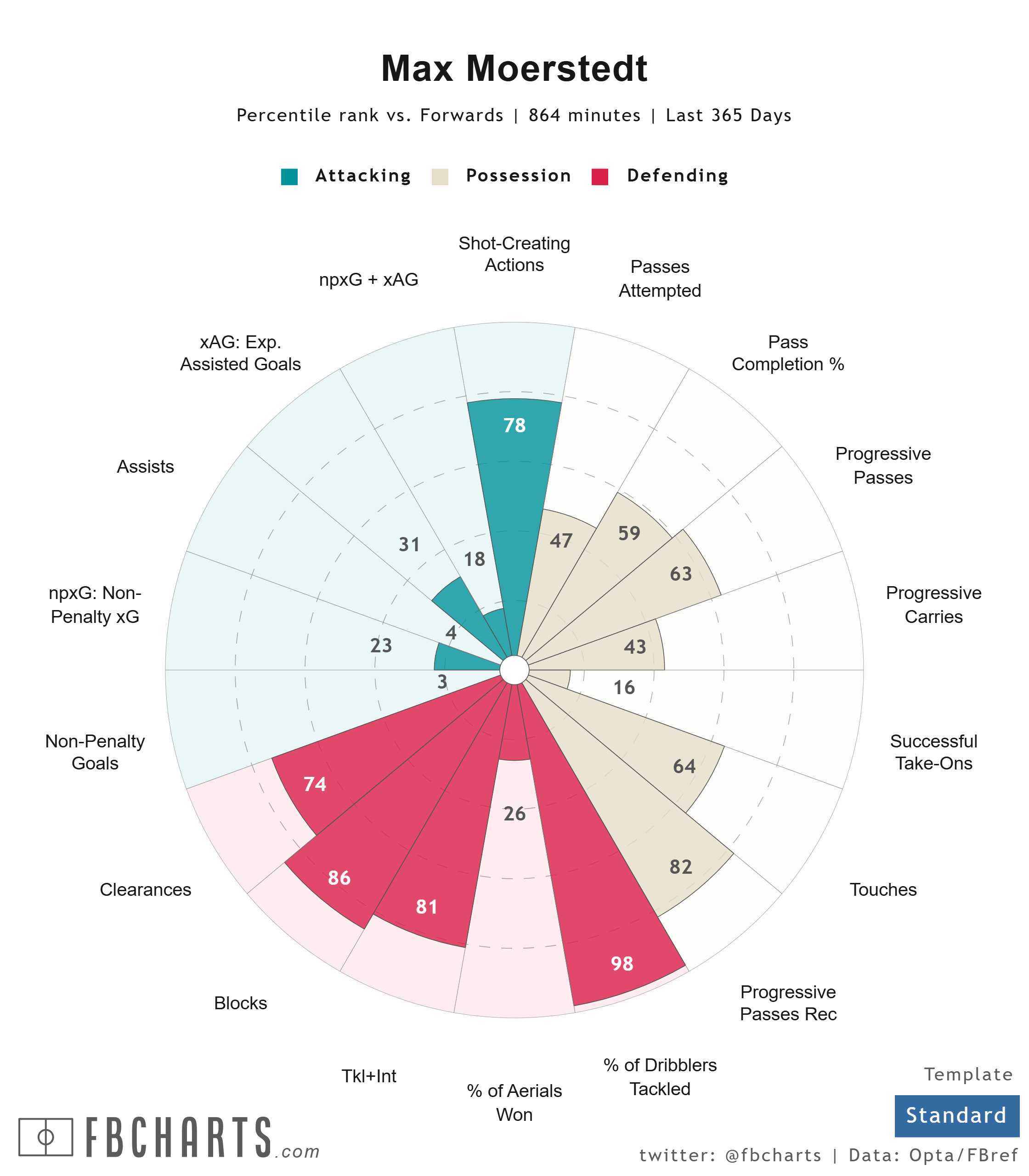 Макс - классический игрок штрафной. Он наконечник, который завершает атаки своей команды. Большинство своих голов он забивает из вратарской в одно, максимум в два касания. Подобрать отскок, замкнуть в пустые - чаще всего он забивает именно так. Мёрштедт редко участвует в комбинациях команды, но включается, когда нужно забить или зацепиться за мяч при выносах.