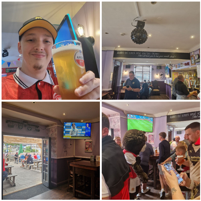 Вечером я снова в том же пабе. Барменша узнает меня по утренней фотографии в твиттере. Босс заведения, узнав о том, что я из Эстонии ушел куда-то в подсобку и принес стикеры своего заведения с логотипом Ротерхэма. Пиво было в подарок.