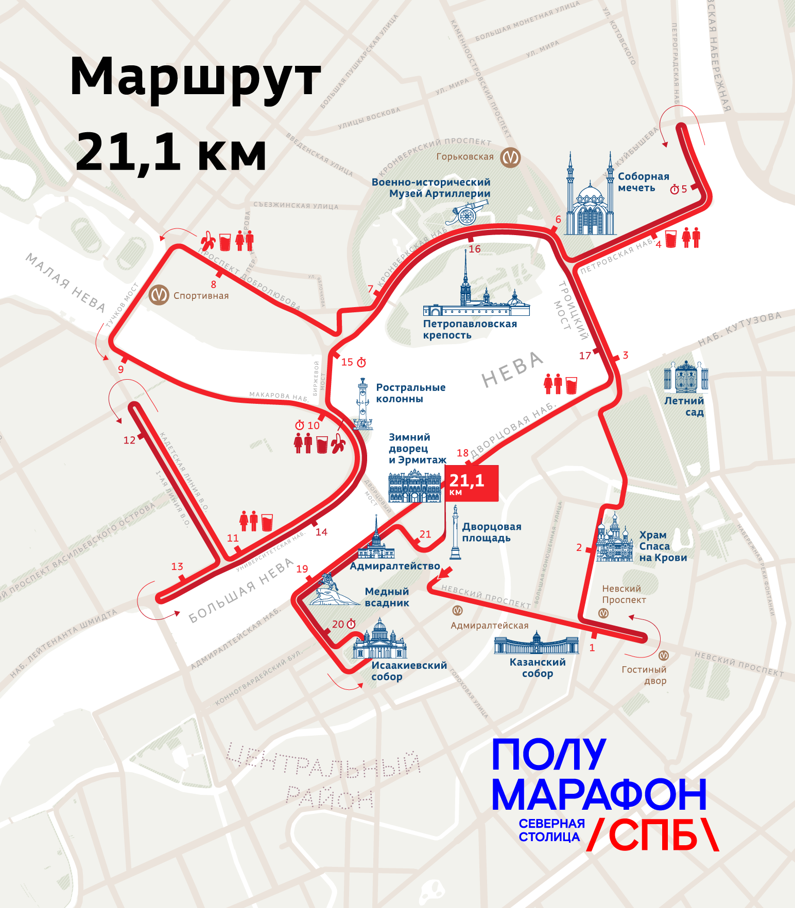Полумарафон «Северная столица» - ежегодный забег в Санкт-Петербурге, который состоит из 2-х дистанций - 10км и 21,1км. Маршрут всегда проходит в самом центре и по живописным местам. Просто насладитесь трассой!