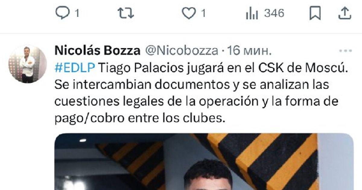 Аргентинский журналист Николас Бозза пишет, что Паласиос станет игроком ЦСКА. Клубы уже начали обмен документами и согласование графика оплаты.