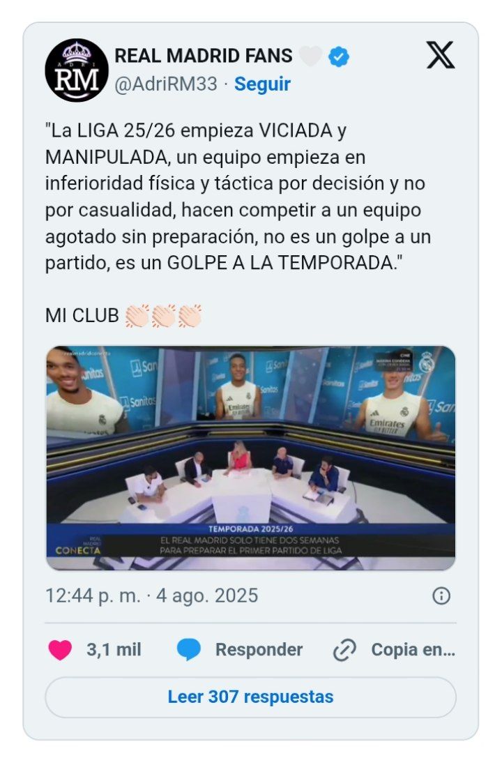«Сезон начинается с несправедливости, манипуляций и предвзятости», — говорится в заявлении. Это продолжение конфликта, который снова ставит под сомнение честность испанского футбола.