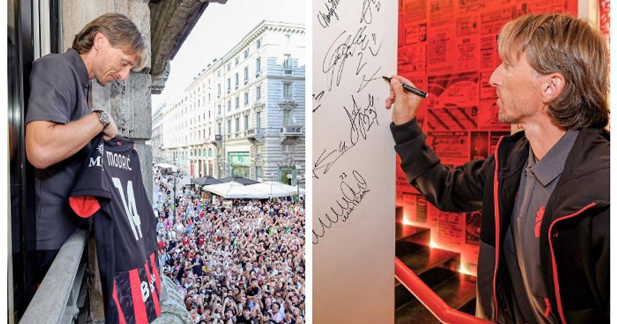 «Милан» приветствует Луку Модрича: хорват был представлен в качестве нового игрока «россонери» и посетил флагманский магазин клуба, у дверей которого сразу образовалась толпа, скандировавшая его имя.