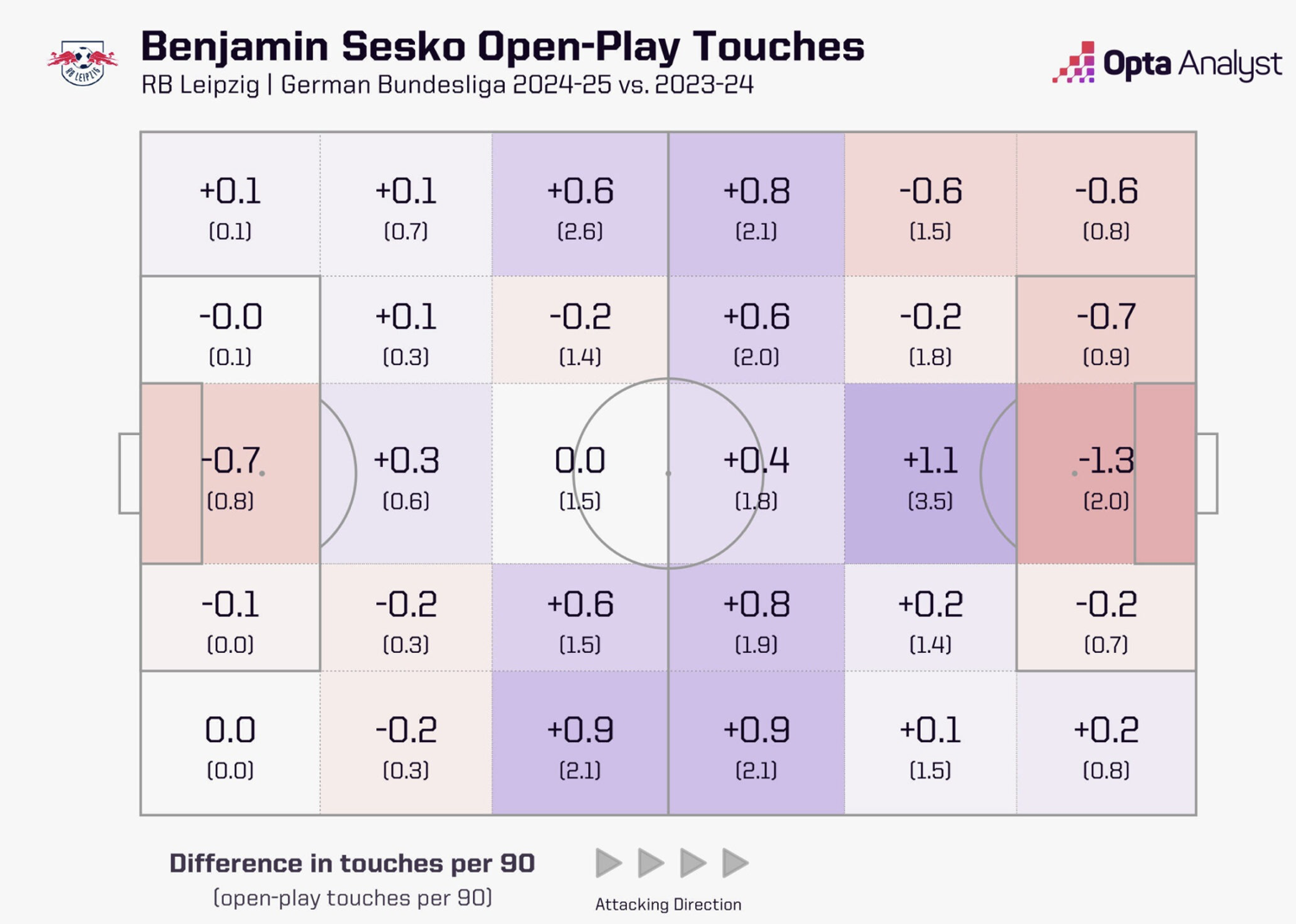 Забавно, но голов у него стало чуть меньше — 13 вместо 14. Хотя минут на поле — на 15 часов меньше. Его поведение на поле изменилось, но качество ударов осталось. Он всё ещё способен забить из ничего. Шешко — один из немногих, кто регулярно забивает после взрывного рывка или из-за штрафной. И бьёт он с обеих ног, в любых ситуациях. Из 25 голов за два сезона: 13 — правой, 4 — левой, 8 — головой. Уникальное распределение.