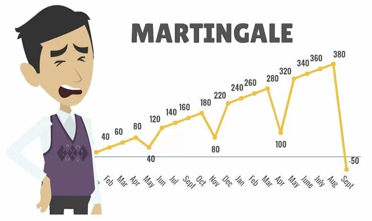 Но даже такие стратегии убыточны с точки зрения теории вероятности. Рассмотрим на примере самой известной стратегии догон (Мартингейл).