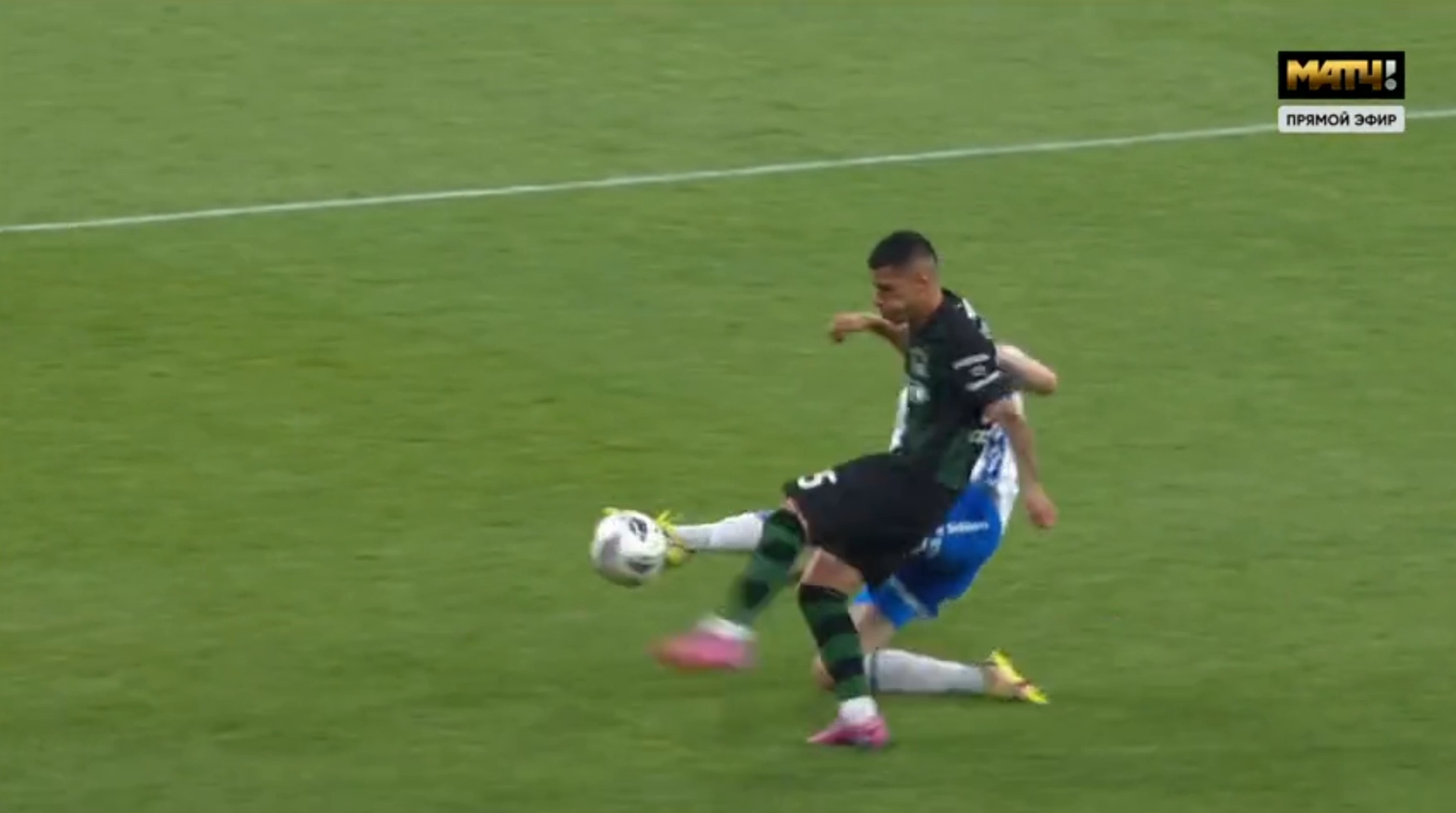Второй полумомент в матче тоже пришёл после заброса, но уже за спину нашим защитникам. Я вот смотрю на стоп-кадр и не могу понять, как Краснодар смог так легко создать численное преимущество в линии нападения? К счастью, Са сыграл в этом эпизоде не по-бразильски, а дальний удар Черникова пришёлся в Маричаля. Через минуту уругваец снова в центре внимания, не позволив колумбийскому легионеру Краснодара пролезть к воротам Лунёва.