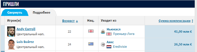 «На сдачу» приобрели уругвайца из «Аякса» — Луиса Суареса: 24 года, 26 млн, отличные сезоны в Голландии, множество голов и голевых передач. Правда, без того хайпа, что сопровождал статного англичанина.
