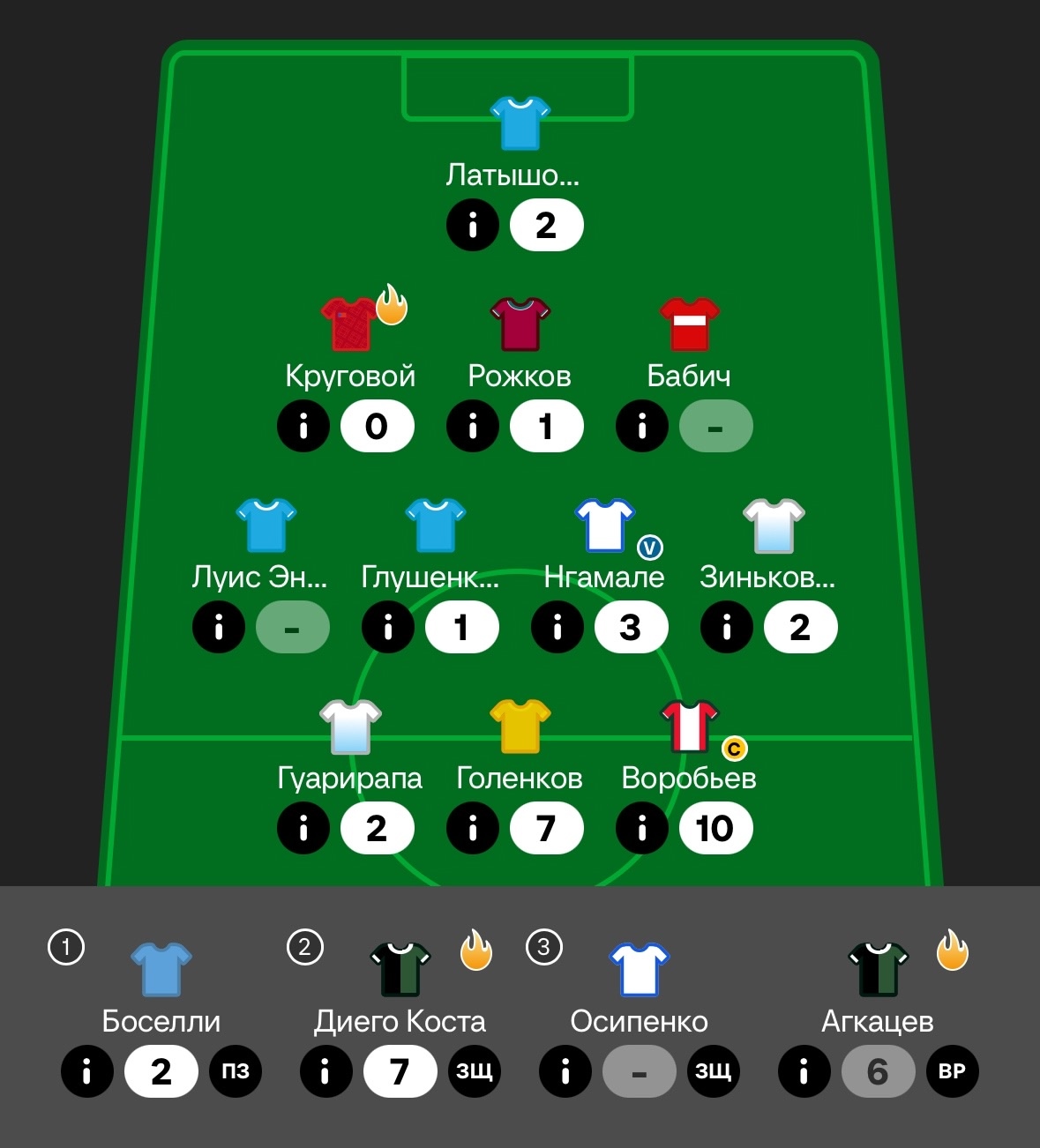 Таким был состав на игровой тур:
