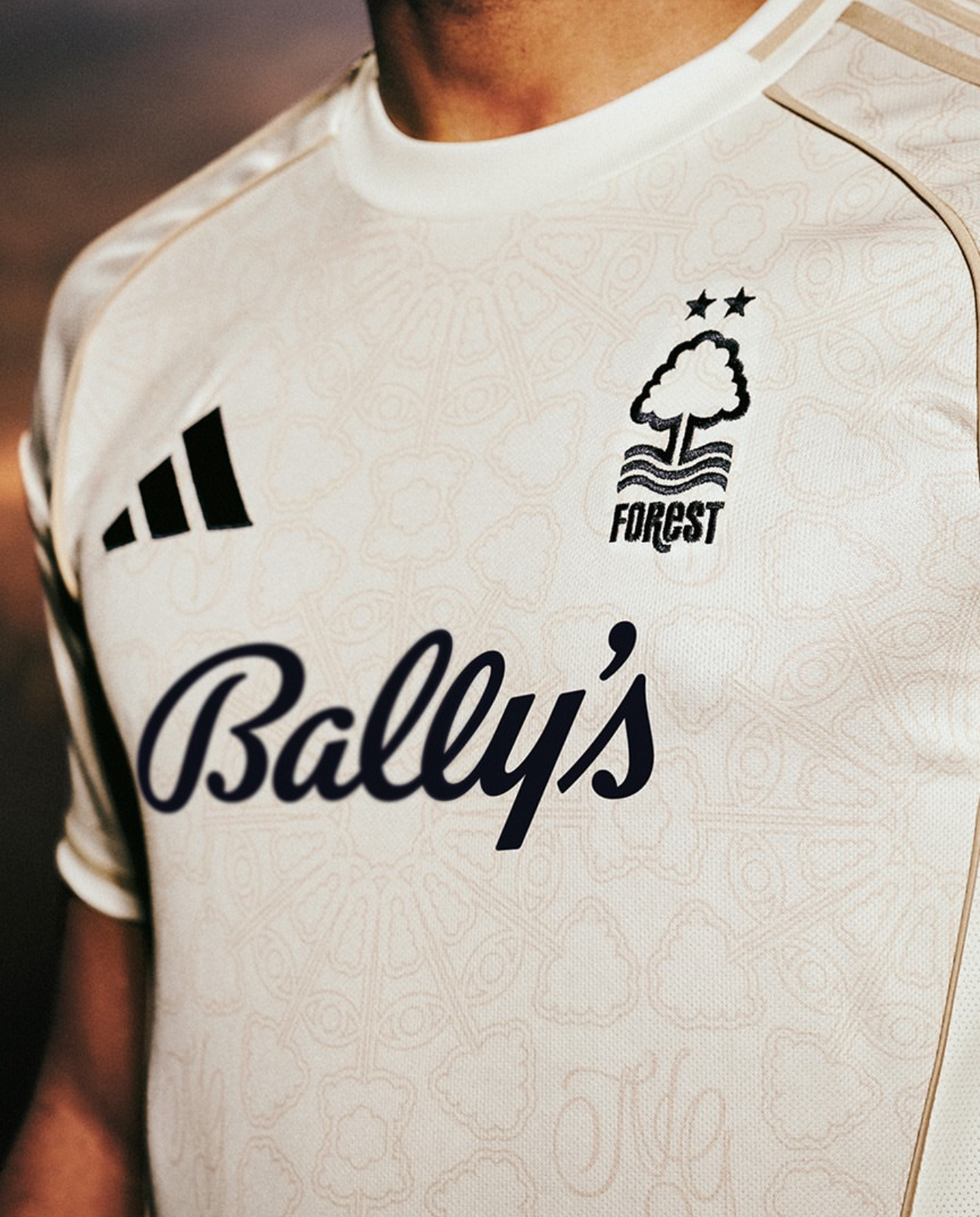 Сливочный цвет формы и кружева в паттерне делают данную джерси максимально лаконичной и стильной. Район Лейс Маркет, который находится недалеко от стадиона, раньше был большим центром производства кружевных изделий.