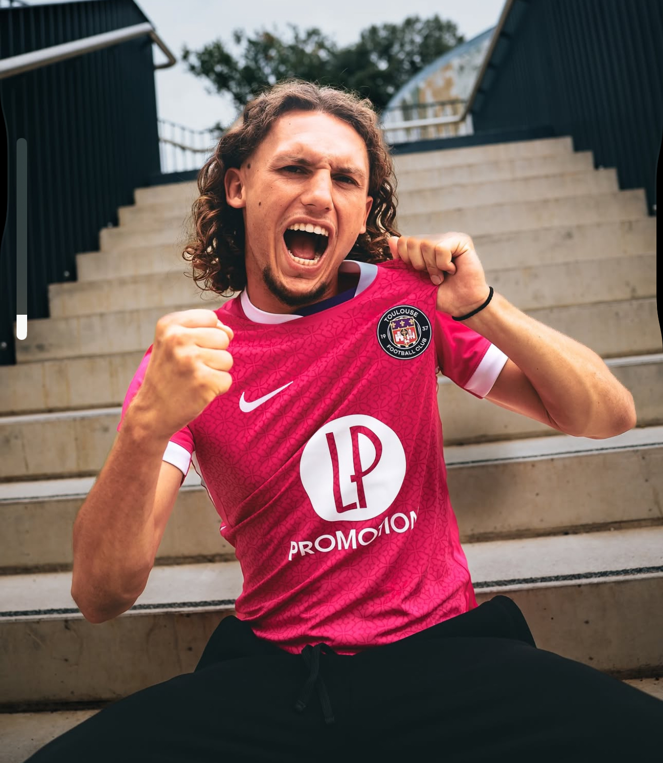 Ярко розовый выездной комплект от «Тулузы» украшен паттерном с окситанским крестом. Данная геральдическая фигура представляет собой крест с двенадцатью окончаниями, часто используется в качестве символа Окситании.