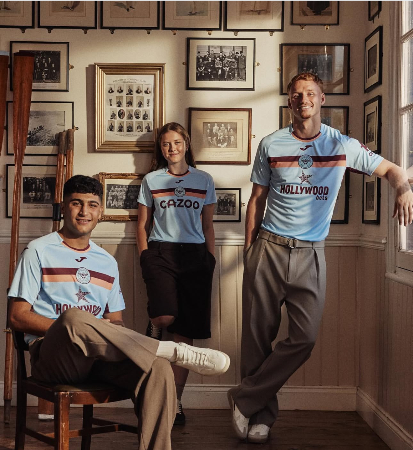 Третий комплект англичан отсылает нас к самому началу истории данного футбольного клуба. В 1889 году секретарь местного гребного клуба Арчер Грин созвал специальное собрание. На нем обсуждалась идея создания футбольного клуба, и она была поддержана. «Брентфорд» взял цвета гребного клуба – светло-голубой, лососевый и бордовый. Именно их мы и видим на третьей форме нового сезона.